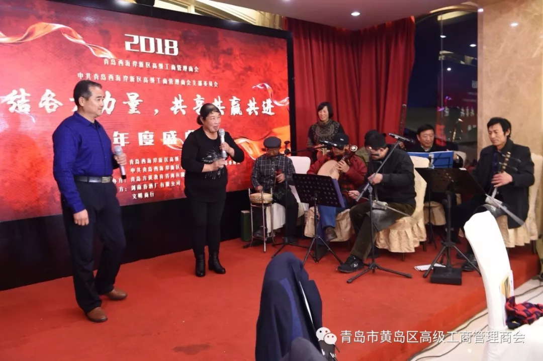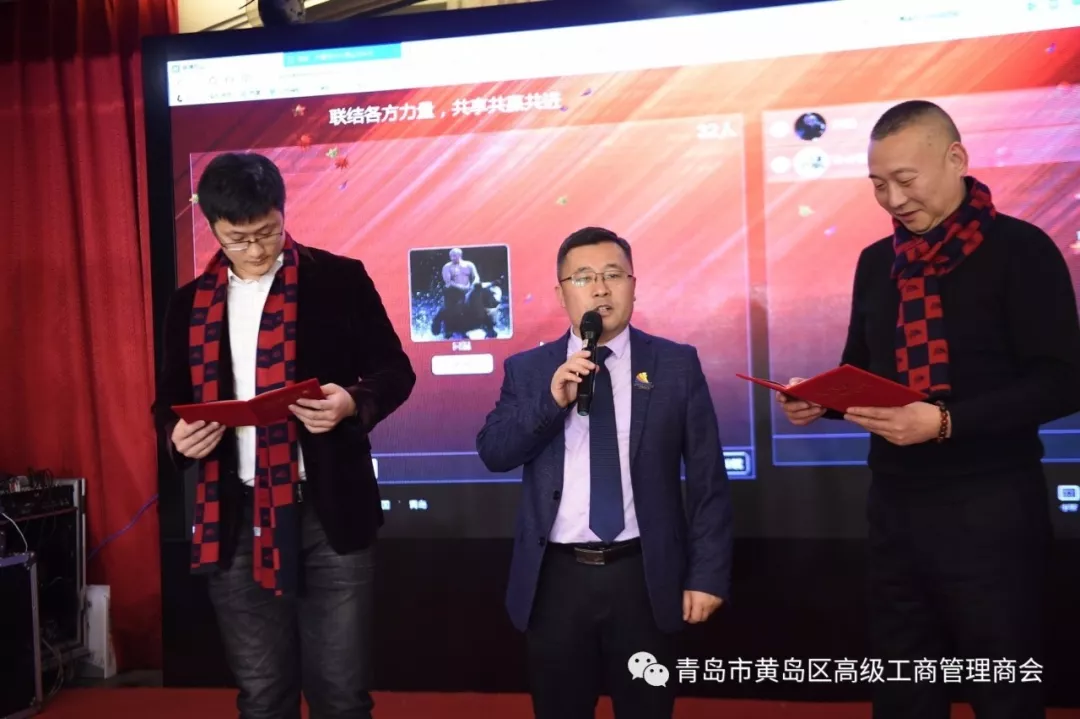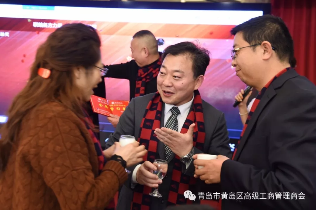 2017年12月17日,由青岛西海岸新区高级工商管理商会、中共青岛西海岸新区高级工商管理商会支部委员会主办的商会团建聚能活动、年会盛典活动在美丽的金沙滩青岛渔夫花园大酒店胜利召开。邀请的嘉宾青岛西海岸新区工委统战部副部长、民营经济发展局局长、区工商联党组书记、常务副主席孙兆旭、文化部艺术发展中心文化创意产业研究院特聘专家、国际中国美术家协会中国分会常务副主席姜华波、西海岸新区作家协会主席张秀芳、西海岸新区书法家协会主席陈祉向、中国邮政储蓄银行青岛开发区支行书记兼行长韩晓明、青岛市中老年音乐舞蹈艺术促进会黄岛分主席王永华、青岛市装饰业协会西海岸新区分会会长安茂景、青岛大学EMBA胶州同学会会长姜永健、西海岸新区餐饮业商会会长范积朋、西海岸新区建材装饰商会会长焦玉玲、西海岸新区青年企业家商会会长薛栋泰、西海岸新区女企业家商会会长杨萍萍、西海岸新区餐饮配送业商会会长李顺欣、西海岸新区苏商商会会长高毅、西海岸新区旅游管理业商会会长陈浩、西海岸新区零售业商会会长林宪璞、西海岸新区诸城商会会长李鹏、西海岸新区混凝土商会会长刘光明、世界旗袍联合会青岛分会主席孟菲、青岛市礼仪文化交流协会会长杨双雨等相约参会。