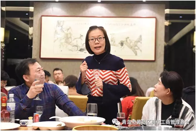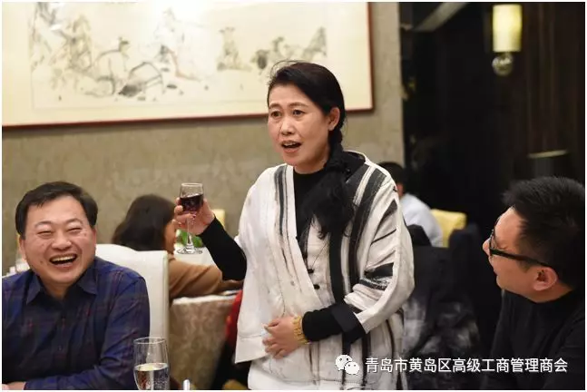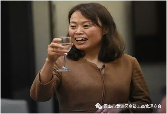 青岛大学EMBA总裁一班师姐李玉(商会常务理事)敬祝福酒