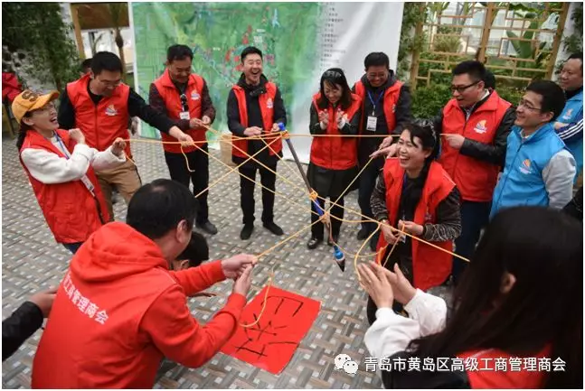 “神笔马良”游戏又称妙笔生花,要求所有队员要拉绳子的末端,在不接触毛笔的情况下,按照教练的要求完成指定任务。最快完成的为获胜方,以此 加强和锻炼团队的配合协作能力。