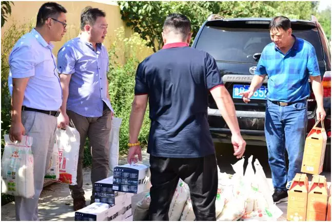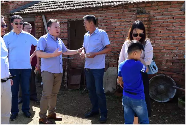 商会为村委对接的包装箱项目的韩厂长也来到了村委看望贫困户
