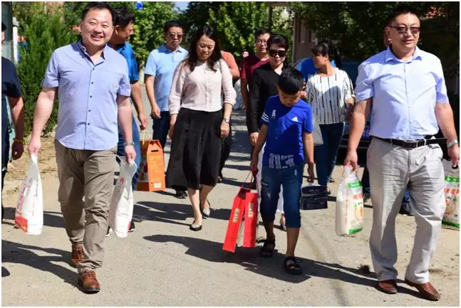 2018年9月24日阳光明媚的中秋节,西海岸新区高级工商管理商会(党支部)在商会执行会长纪新磊、秘书长王岩、常务理事钟文明、常务理事冉毅、理事韩同升等代表爱心会员来到商会精准扶贫村(王台镇徐村),看望慰问6户特殊贫困家庭,使他们深刻感受到党的关爱和温暖。在节日来临之际,商会收到徐村村委的求助,希望帮助徐村生态猪养殖专业合作社销售黑猪肉的信息后,在商会外联部部长贾文洁的热心联络下和同学们的支持下很快帮助合作社销售近3000斤黑猪肉,由此也得到了村委及合作社的万分感激和对养殖业发展的信心。