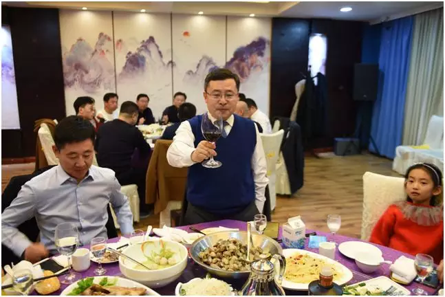 青岛天增运餐饮管理有限公司总经理 商也(商会理事)敬祝福酒