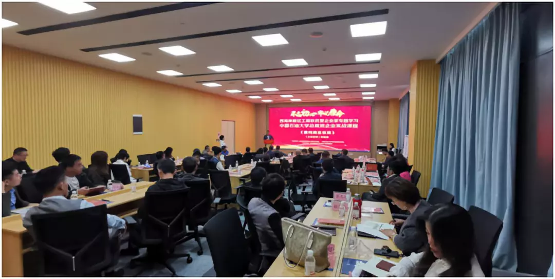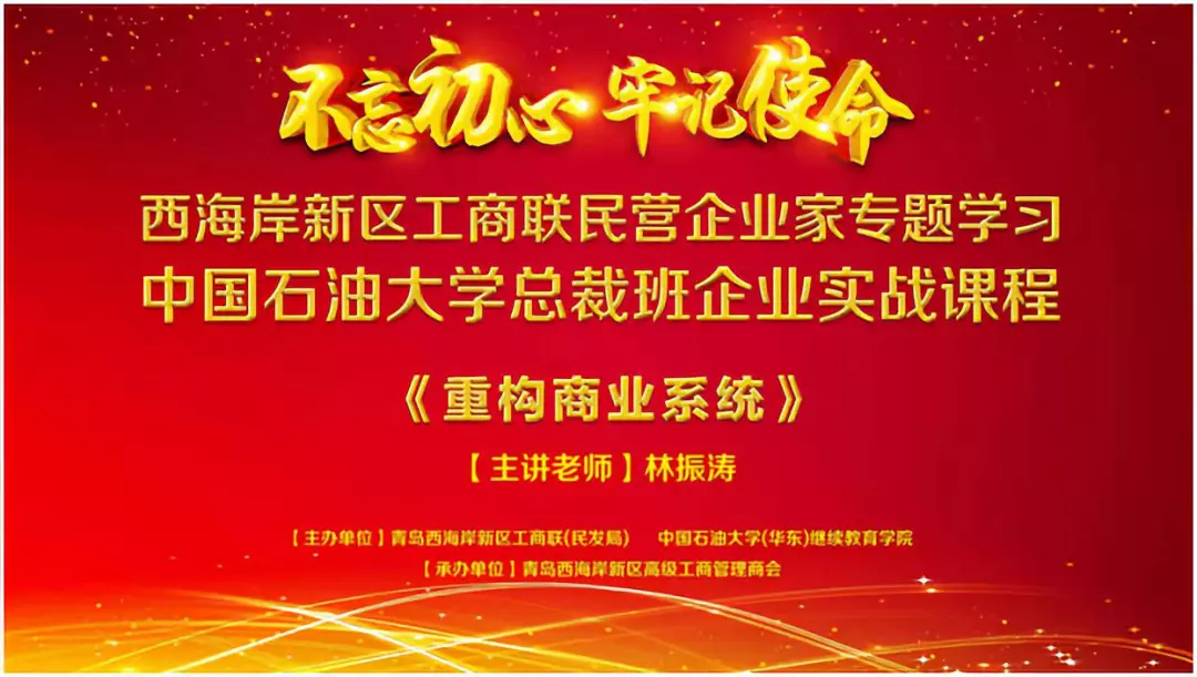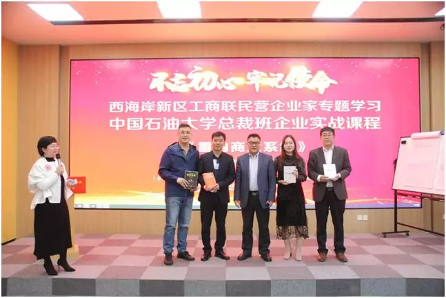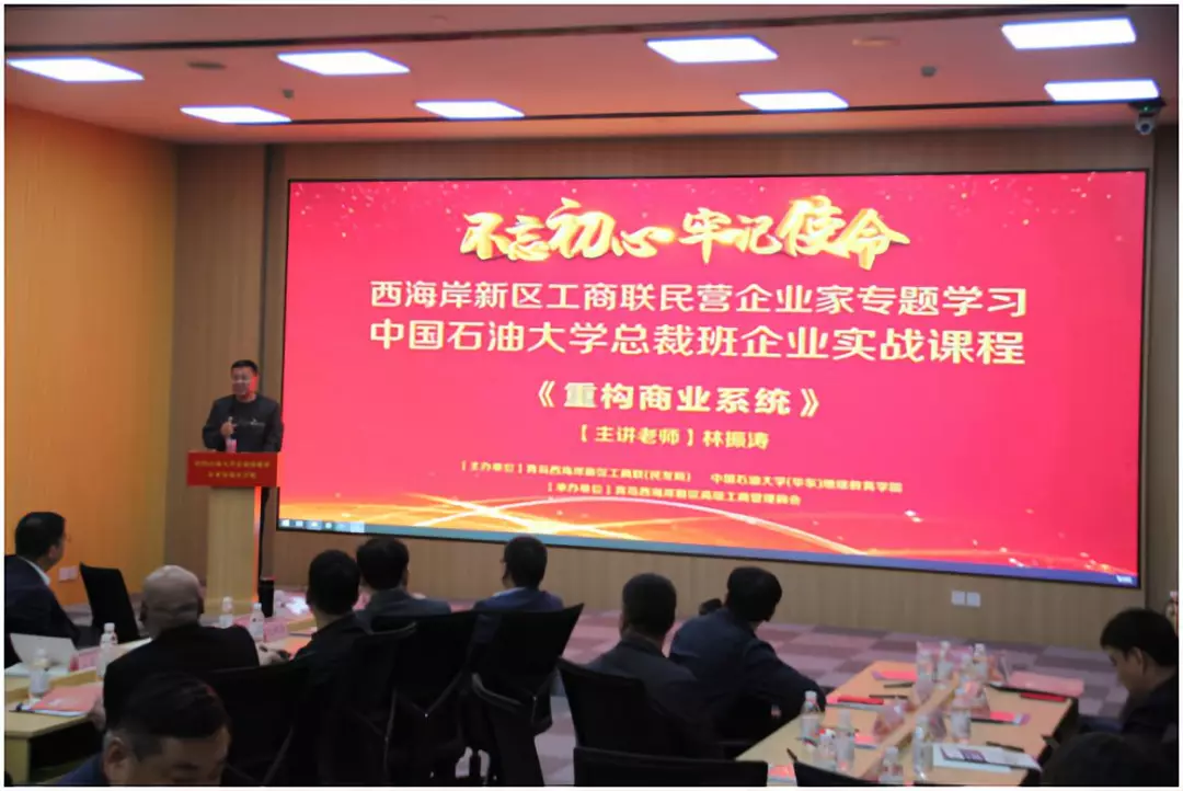 2019年10月18日,青岛西海岸新区工商联(民发局)为落实“不忘初心、牢记使命”主题教育工作,提高民营企业家管理水平和业务创新能力,联合中国石油大学(华东)继续教育学院主办、青岛西海岸新区高级工商管理商会暨党支部承办的第三期民营企业家培训班在区工商中心成功举行。区工商联会员单位、区工商中心入驻企业负责人及高级工商管理商会暨西海岸EMBA总裁班同学会会员单位等80余人参加了此次培训学习。