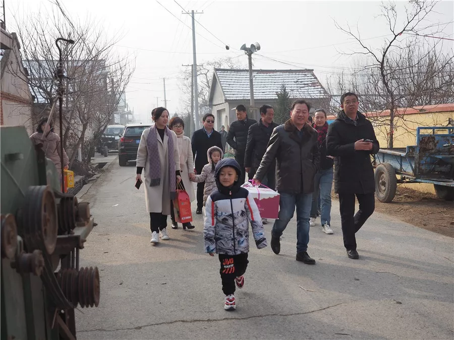 高级工商管理商会会长纪新磊带领会员们走在帮扶徐村的道路上,气温低冷,心中炙热。