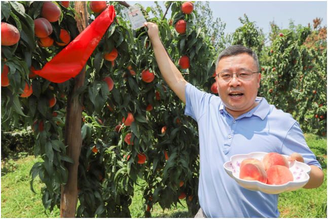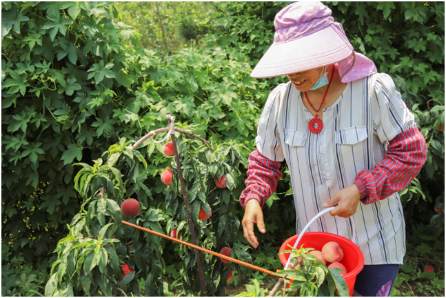 桃农帮助因工作繁忙未到桃园采摘的商会会员摘桃