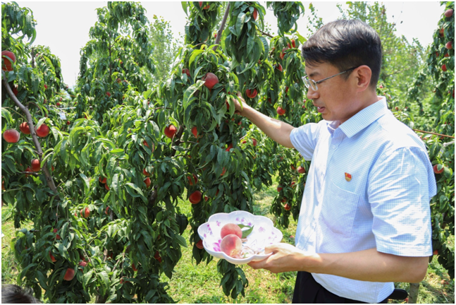 王台乡村振兴工作队驻徐村第一书记杨仕波帮助会员摘桃子