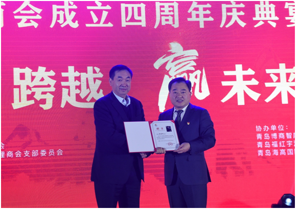 西海岸新区工商联(总商会)商会办公室主任朱志勇为商会新增选常务理事单位授牌