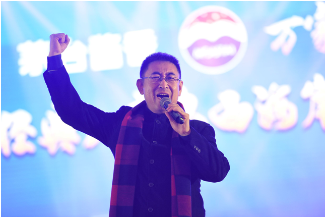 杨博老师演唱《欢聚一堂》,浑厚亲切的嗓音飘荡在欢乐融洽的年会氛围中。