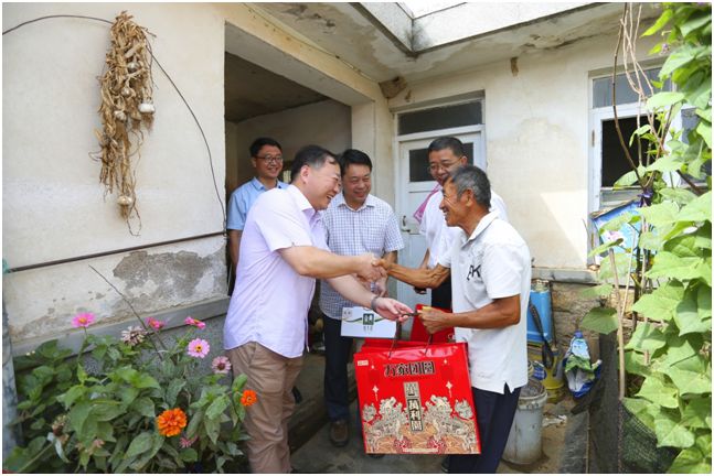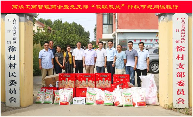 2019912日秋高气爽、瓜果飘香,青岛西海岸新区高级工商管理商会暨党支部“践行初心使命,开展双联双扶”活动,积极履行社会责任,仲秋佳节来临之际,在商会执行会长纪新磊、党支部书记杨军的组织下,商会常务理事冉毅、副秘书长郭强、副秘书长张立秋、理事韩通升、会员冯国魁一起来到商会帮扶村王台镇徐村,看望慰问徐村优秀老党员、伤残退伍老军人、常年患病的贫困户家庭共计九户,给他们带去了节日的祝福。